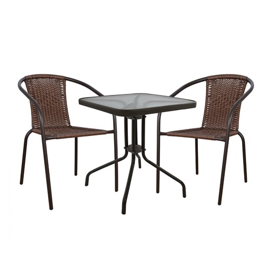 Η πλάτη και το κάθισμα είναι ντυμένα με πλεκτό συνθετικό υλικό wicker σε σκούρο καφέ χρώμα.