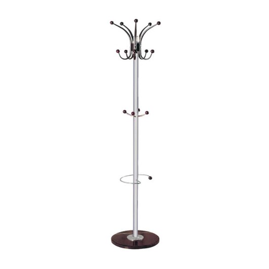 Καλόγερος μεταλλικός, με ασημί επένδυση PVC με πολλαπλές θέσεις για ρούχα και θέση για ομπρέλες με μαρμάρινη βάση για απόλυτη αντοχή βάρους.
