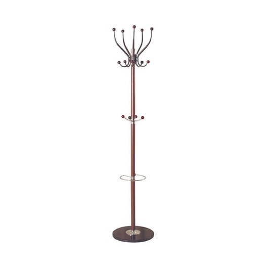 Καλόγερος μεταλλικός, με καρυδί επένδυση PVC με πολλαπλές θέσεις για ρούχα και θέση για ομπρέλες με μαρμάρινη βάση για απόλυτη αντοχή βάρους.