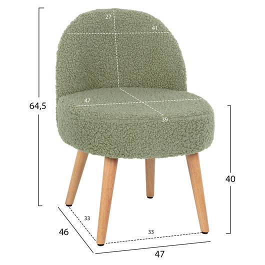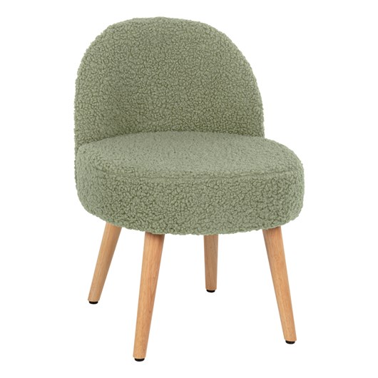 Σκαμπό με πολύ χαμηλή πλάτη YASMINE με επένδυση από ζεστό μπουκλέ ύφασμα σε ΦΥΣΤΙΚΙ απόχρωση, με ξύλινα πόδια σε φυσική απόχρωση.