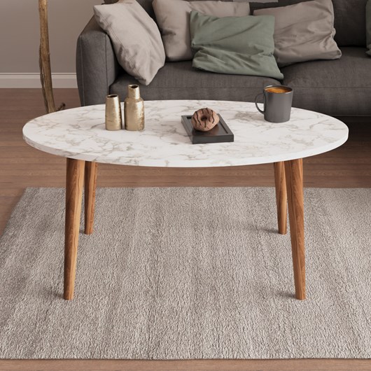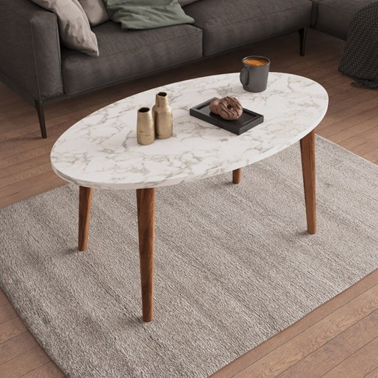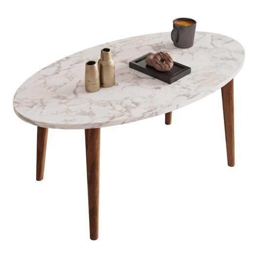 Ανακαλύψτε το VITAL. Ένα σετ που θα ικανοποιήσει και θα εξυπηρετήσει κάθε σας ανάγκη στο χώρο του σαλονιού. Αποτελείται από ένα οβάλ τραπέζι σαλονιού και 3 στρογγυλά βοηθητικά τραπεζάκια σε διαφορετικά ύψη. Οι επιφάνειες των τραπεζιών είναι από μελαμίνη σε όψη ΛΕΥΚΟΥ ΜΑΡΜΑΡΟΥ, ενώ τα πόδια τους είναι ξύλινα σε ΚΑΡΥΔΙ χρωματισμό.