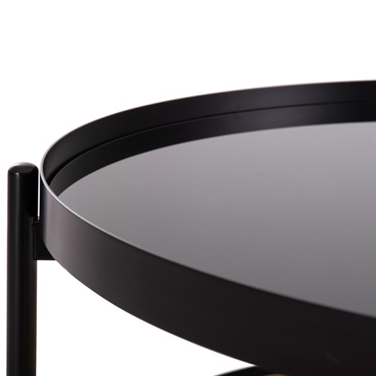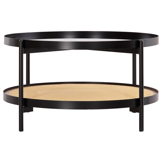 Το SEITZ είναι ένα όμορφο χαμηλό στρογγυλό τραπέζι για το σαλόνι. Το χαρακτηριστικό του είναι ότι διαθέτει 2 επιφάνειες οι οποίες στηρίζονται σε ΜΑΥΡΕΣ μεταλλικές χιαστί βάσεις. Η επάνω επιφάνεια είναι γυάλινη (γυαλί ασφαλείας) σε ΜΑΥΡΟ χρώμα, ενώ η κάτω επιφάνεια είναι κατασκευασμένη από Rattan σε πλέξη wicker σε ΦΥΣΙΚΟ χρώμα. Ένα μοναδικό τραπέζι που συνδυάζει πρακτικότητα και πολυτέλεια για τον χώρο σας.