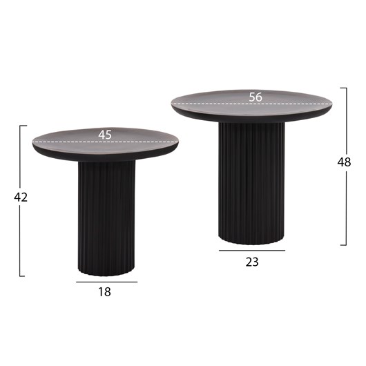 Το ELAF είναι ένα σετ που αποτελείται από 2 τραπέζια σαλονιού με πολύ ιδιαίτερο design αλλά και υλικά κατασκευής. Οι σχεδόν στρογγυλές επιφάνειες είναι από ξύλο mango σε καφέ χρώμα, και σε εμαγιέ ημιδιάφανη υλοποίηση. Οι βάσεις είναι μεταλλικές σε μαύρο χρώμα με πτυχωτό σχέδιο. Τα διαφορετικά ύψη τονίζουν την πρακτικότητα αυτού του σετ που θα καλύψει τις ανάγκες στο σαλόνι σας.