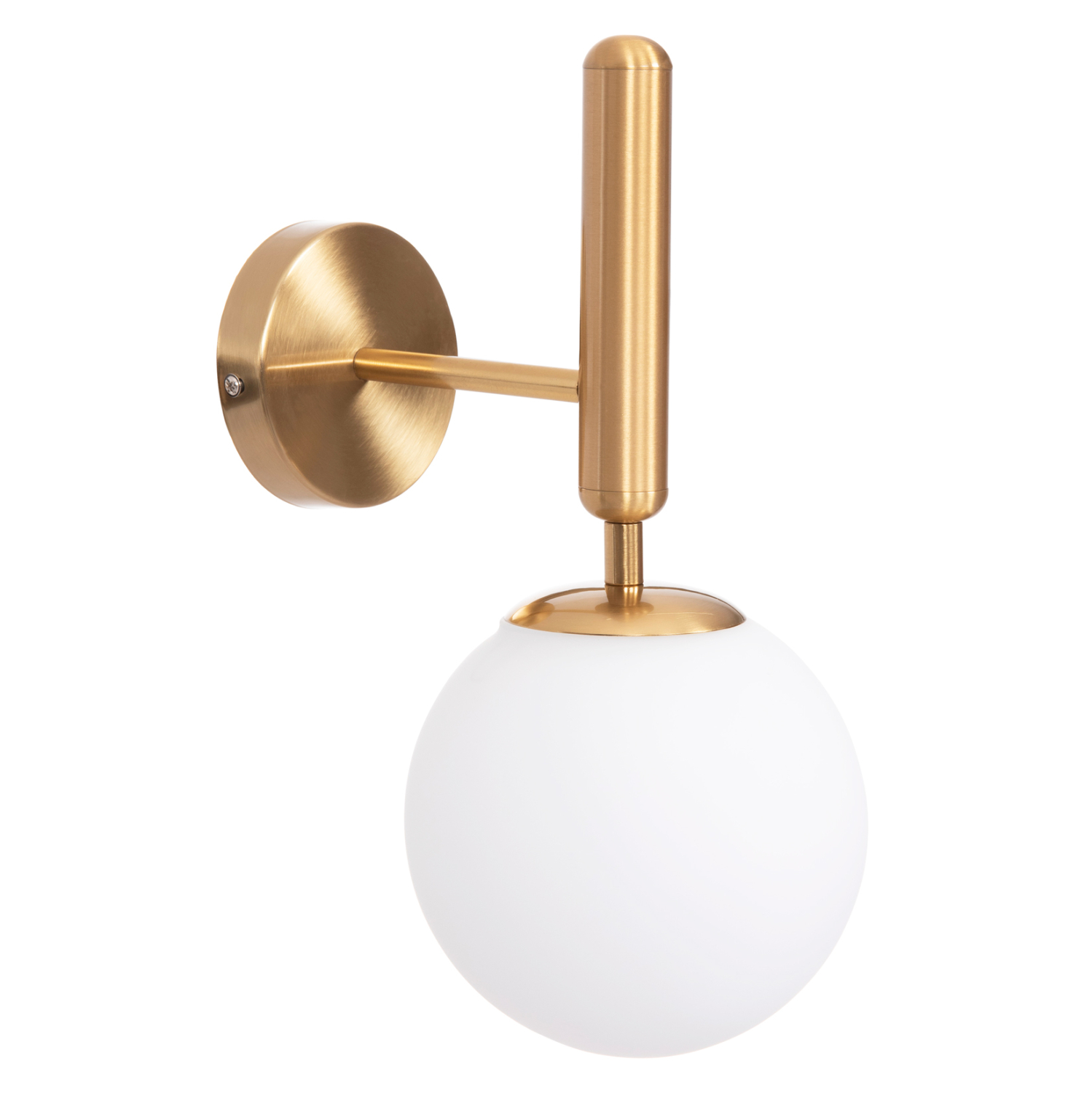 Η απλίκα τοίχου HOMY έχει μεταλλική βάση σε ΧΡΥΣΟ χρώμα και γυάλινο γλόμπο. Ο βραχίονας είναι ρυθμιζόμενος ως προς την κατακόρυφη κατεύθυνση του γλόμπου.