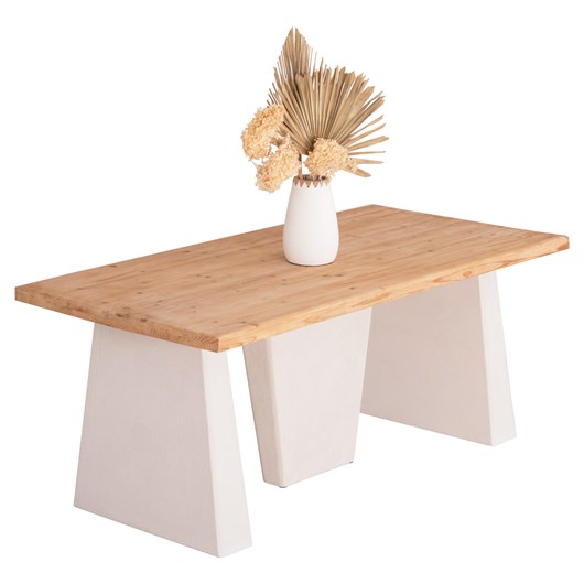 Το χειροποίητο τραπέζι αυτό διαθέτει ορθογώνια επιφάνεια από ξύλο ελάτου σε ΦΥΣΙΚΟ χρώμα, και πόδια με όμορφο design σε ΥΠΟΛΕΥΚΟ χρώμα από MDF με υφή σαγρέ τσιμέντου, που αποτελεί την πιο σύγχρονη τάση στον τομέα του interior design. Συνδυάστε το με ταιριαστές καρέκλες ή πολυθρόνες και δημιουργήστε την τραπεζαρία που ονειρεύεστε. Ενδεικνυται για μια "νησιωτικού" στυλ διακόσμηση!
