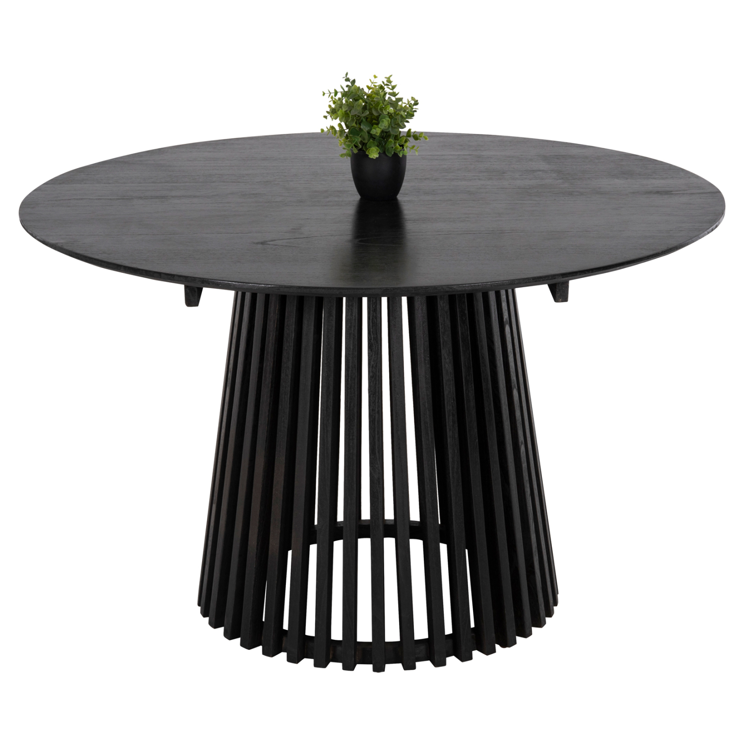 Το FRANTZ είναι ένα στρογγυλό τραπέζι με φαλτσοκομμένη επιφάνεια για την τραπεζαρία, με ικανοποιητικές διαστάσεις σε ΜΑΥΡΟ χρώμα. Η επιφάνεια στηρίζεται σε μια ξύλινη κατασκευή στο κέντρο με πολλές δοκούς σε κυκλική διάταξη που ενώνονται μεταξύ τους με δακτυλίους στην εσωτερική πλευρά. Αυτό το τραπέζι θα αναβαθμίσει αισθητικά την τραπεζαρία σας ενώ μπορεί να ταιριάξει με πολλά διαφορετικά στυλ και χρώματα στον τριγύρω χώρο, όπως και με διαφορετικά στυλ καρέκλας.