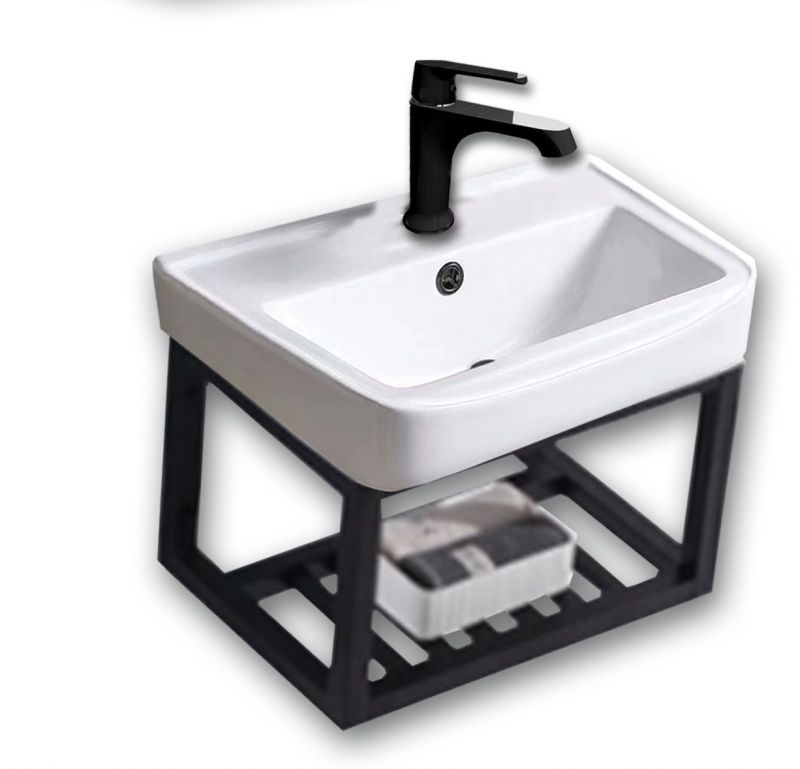 Νιπτήρας πορσελάνης λευκός με βαση st/st μαυρη
